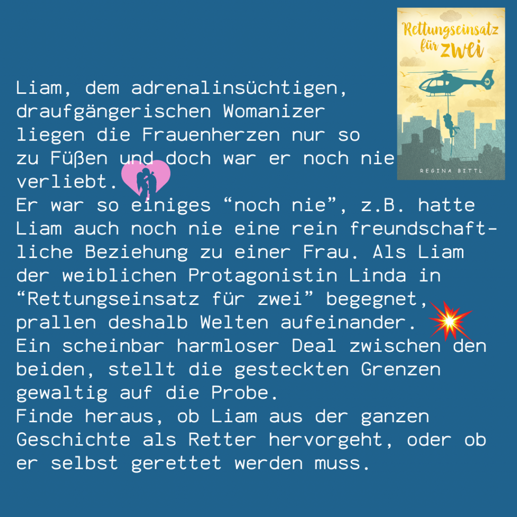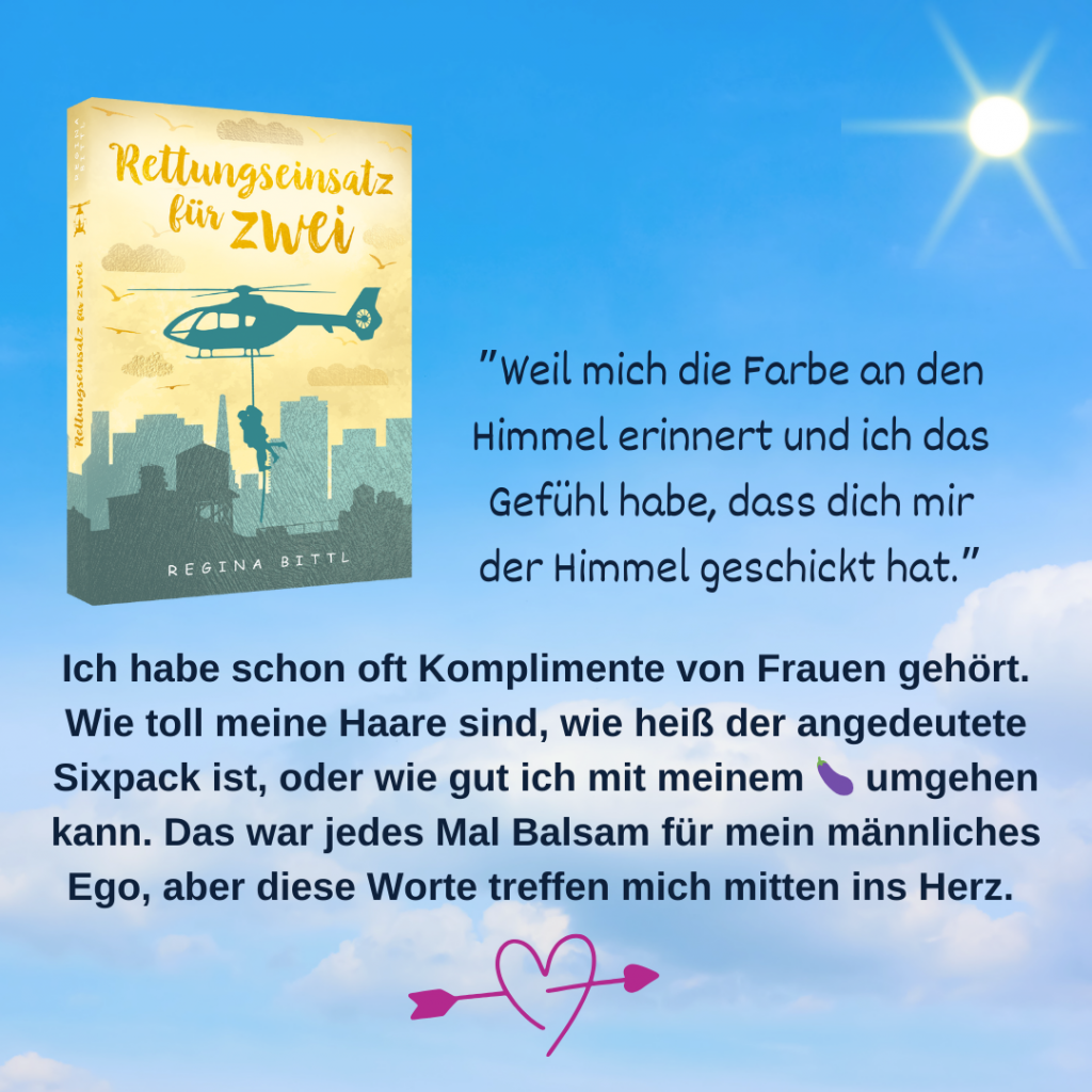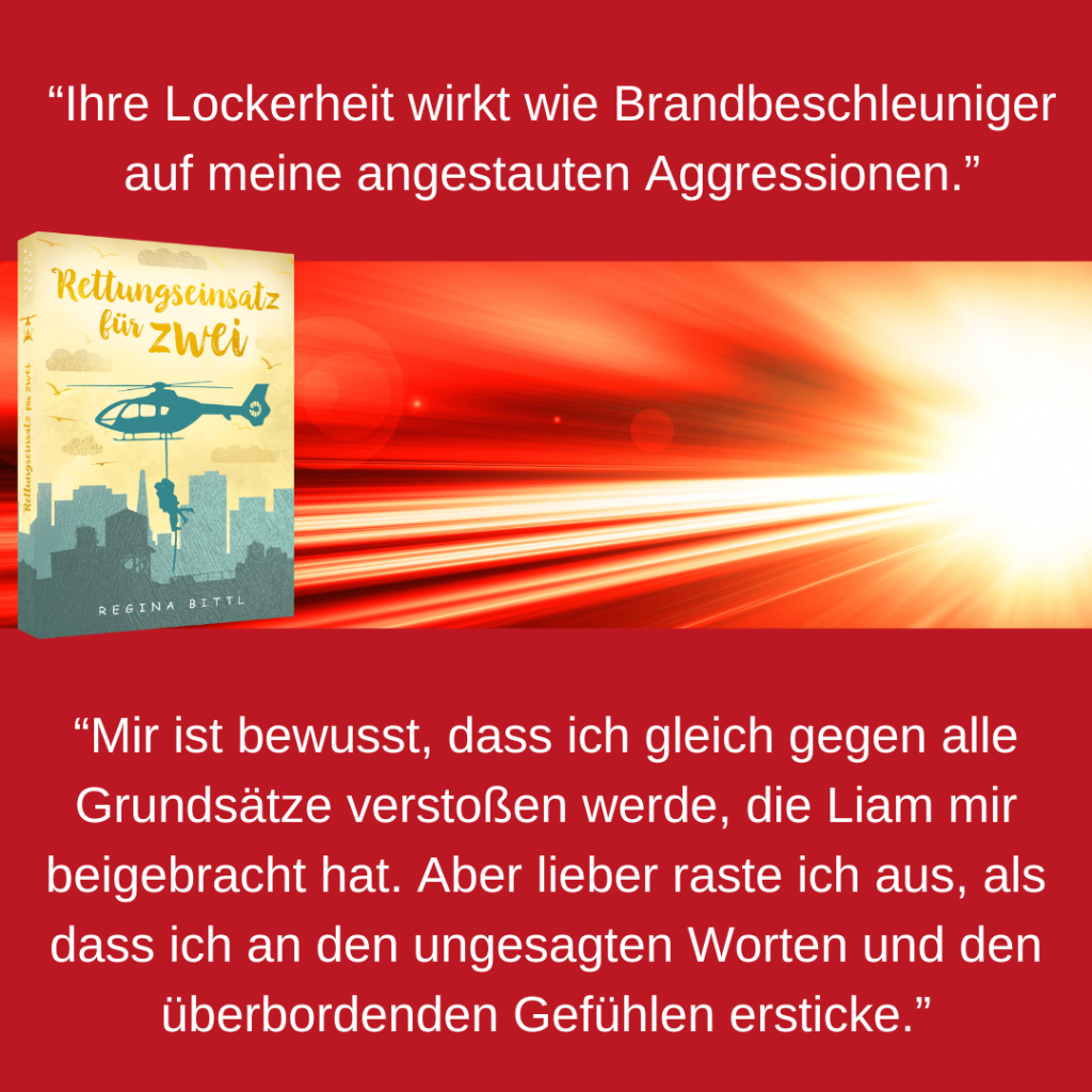Genervt seufze ich. Womit habe ich das verdient? Ich bin kein Einzelgänger. Im Gegenteil, wenn man den Gerüchten über mich Glauben schenkt, jage ich jedem Rockzipfel hinterher, der nicht bei drei auf den Bäumen ist. Mich stört das Getuschel nicht, denn ein Funken Wahrheit liegt darin. Als athletisch gebauter und hübsch anzusehender Rettungspilot verfüge ich offenbar über sämtliche sexy Attribute, auf die das weibliche Geschlecht abfährt. Wer wäre ich, die Fantasien, die Frauen auf mich projizieren, unerfüllt zu lassen? Beinah täglich erlebe ich, wie kurz das Leben sein kann, deshalb versuche ich jeden Moment auszukosten. Aber definitiv nicht an meinem geschützten Ort. Ich halte mich wahrlich nicht an viele Regeln, allerdings gibt es hier eine klare unverrückbare Grenze zwischen der Welt und mir. Diese verteidige ich eisern. Vor unterdrückter Wut zucken meine Kiefermuskeln. Mit dem Vorsatz, die Fremde aus meinem Paradies zu vertreiben, stürme ich auf sie zu.